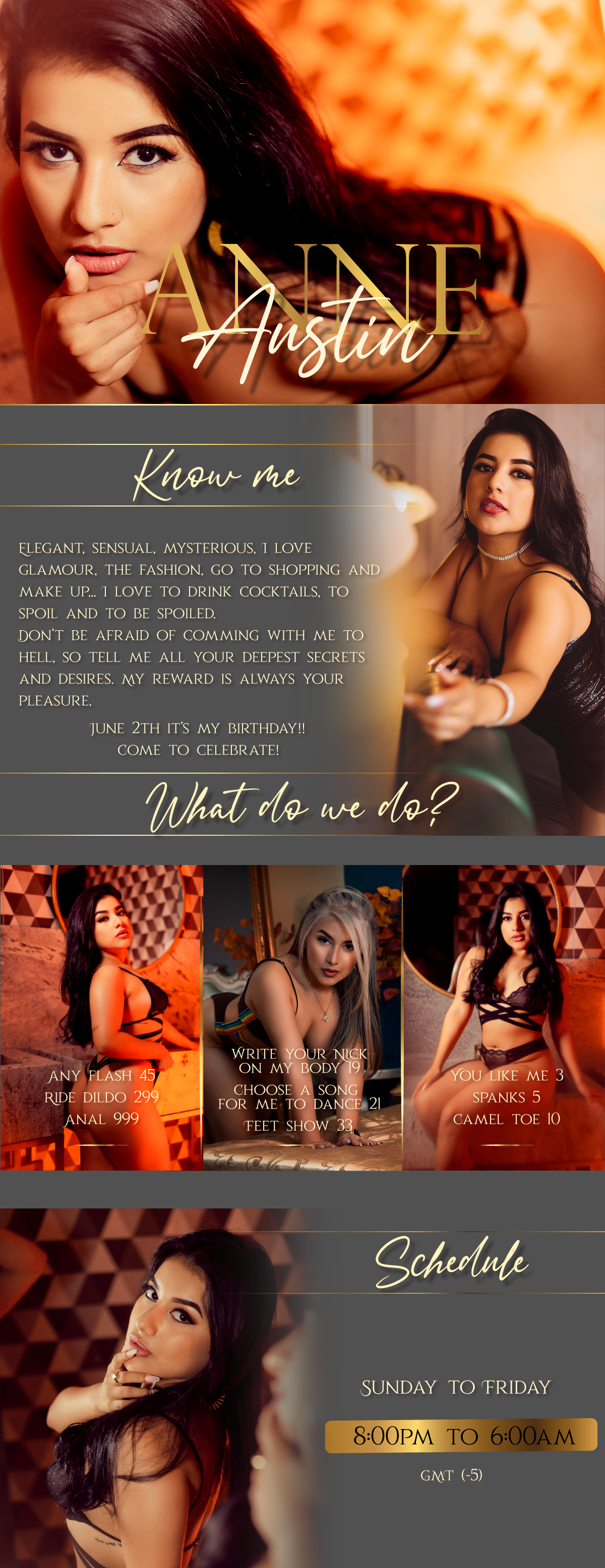 Genom att klicka på knappen kommer dy flytta AnneAustin till första plats på huvudsidan i 60 sekunder. Under denna tid kommer modellens chattrum att bli synligare och otroligt populärt! En notifikation om din åtgärd kommer synas i chatten och är synligt för modellen och övriga chattanvändare. AnneAustin kommer garanterat uppskatta denna gest och bli oerhört tacksam till dig!